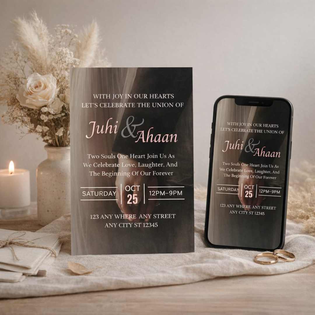 Celebrate your engagement with this beautifully crafted invitation card. The romantic design and balanced layout make it perfect for sharing your joyful moment with friends and family.